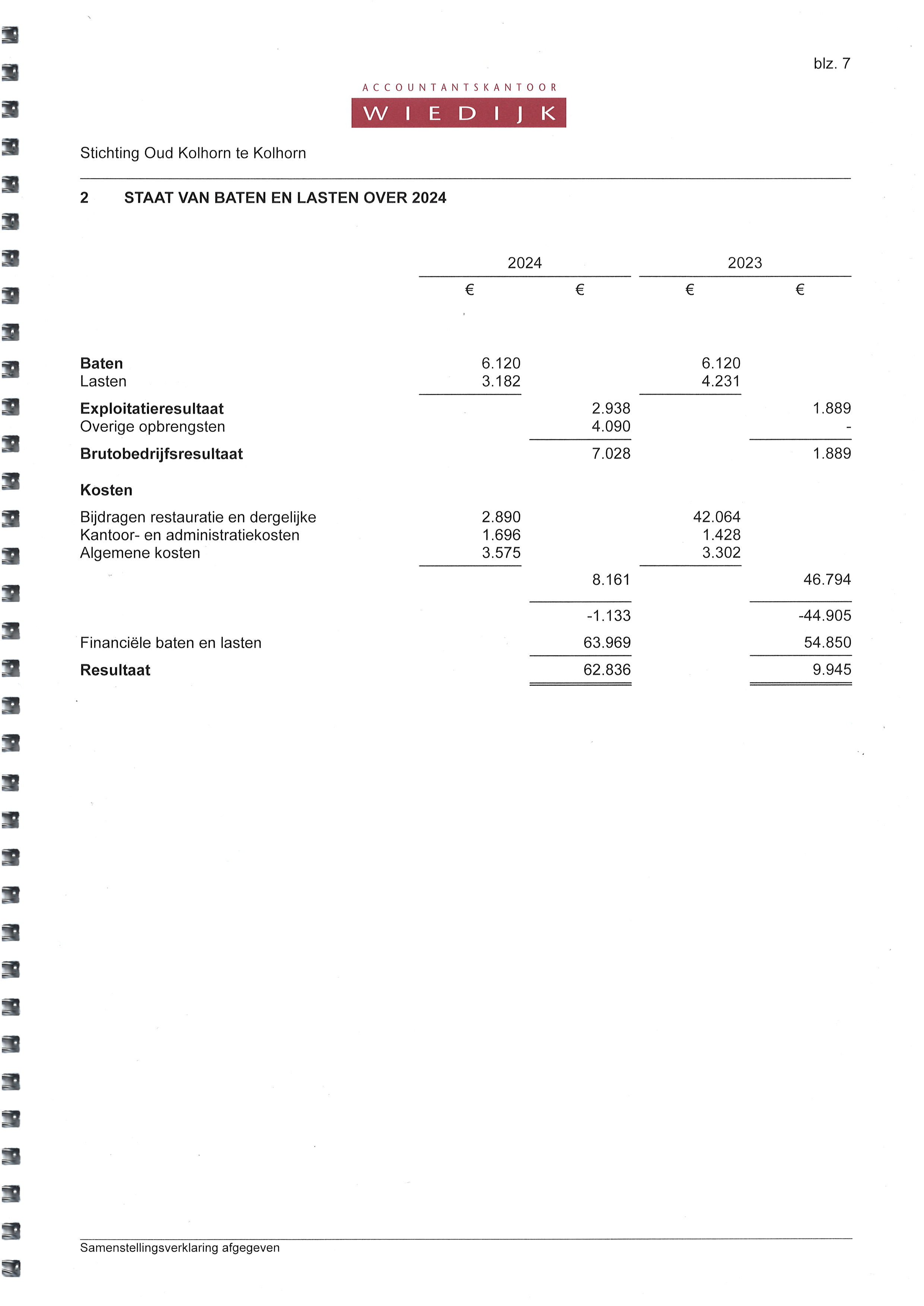 De boeken van de Stichting Oud Kolhorn worden jaarlijks door accountantskantoor Wiedijk gecontroleerd en opgesteld.